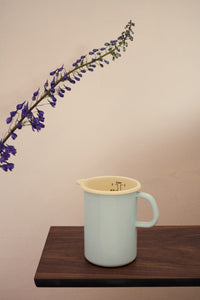 Der türkise Messbecher Emaille kann auf allen Herdarten zum Kochen oder Erhitzen von z.B. Milch verwendet werden. Ich verwende es auch zum manuellen Bedampfen beim Brotbacken, um ein Mehlkochstück auf dem Herd anzurühren und den morgendlichen Porridge zu kochen.