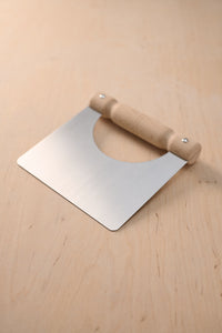 Der Teigabstecher hat eine harte Schneidefläche um Teig mühelos zu teilen oder zu bearbeiten. Er wird aus rostfreiem Edelstahl und unbehandeltem Buchenholz hergestellt. Durch die Aussparung zwischen Klinge und Griff, lässt sich der Teigabstecher gut greifen.